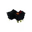 Het gaat om de voorste schakelaar op de afbeelding. Deze schakelaar licht op als hij aan staat.