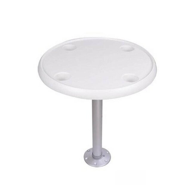 Creëer een praktische en gezellige eet- of borrelplek aan boord met dit stevige ronde boottafelblad. Gemaakt van high-impact kunststof, bestand tegen UV-straling en diverse weersomstandigheden. Dankzij de geïntegreerde bekerhouders en een subtiele opstaande rand blijven drankjes en andere items stevig op hun plek, zelfs tijdens het varen.